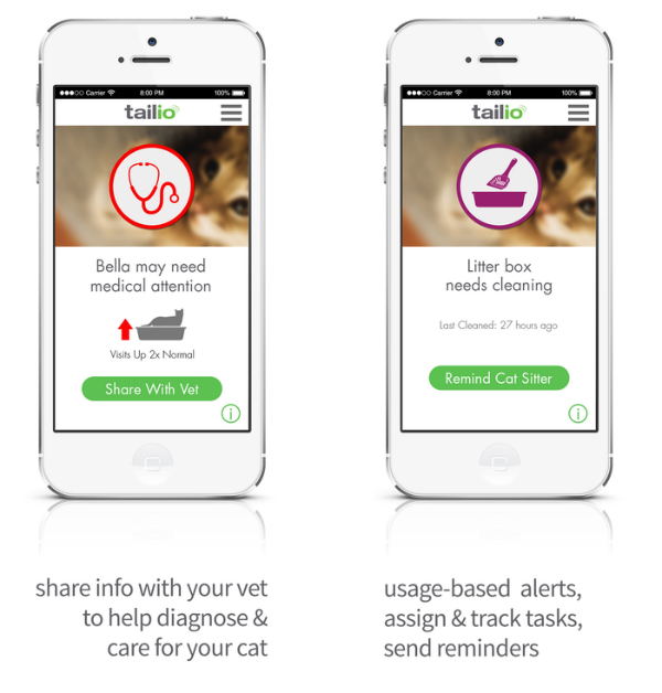 Tailio 会提醒你猫砂盆的便便“饱和”,该清理了。此外,当监测到猫咪的体重变化异常,可能会带来健康问题时,不管你在哪里,app 都会向你的手机发出警告。要知道,猫咪的生理行为异常也是许多健康问题的早期征兆。同时 Tailio 还可以把健康信息发送给兽医,从而进一步做出诊断和疾病防范。