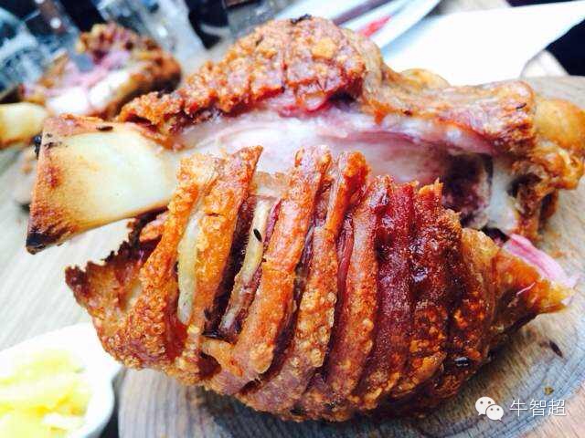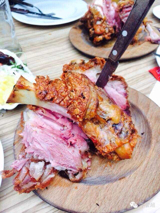 维也纳特色,烤猪排,在多瑙河畔一家餐馆,老外们一人一排,国人则一根一根的吃