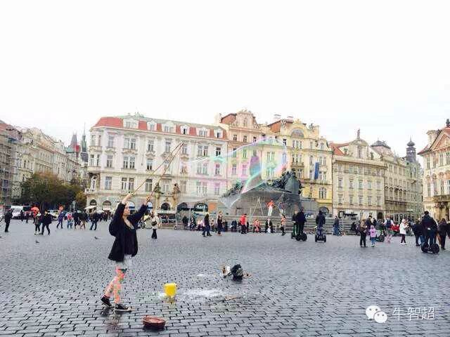 布拉格广场,吹泡泡的女子,一个下午,地全湿了