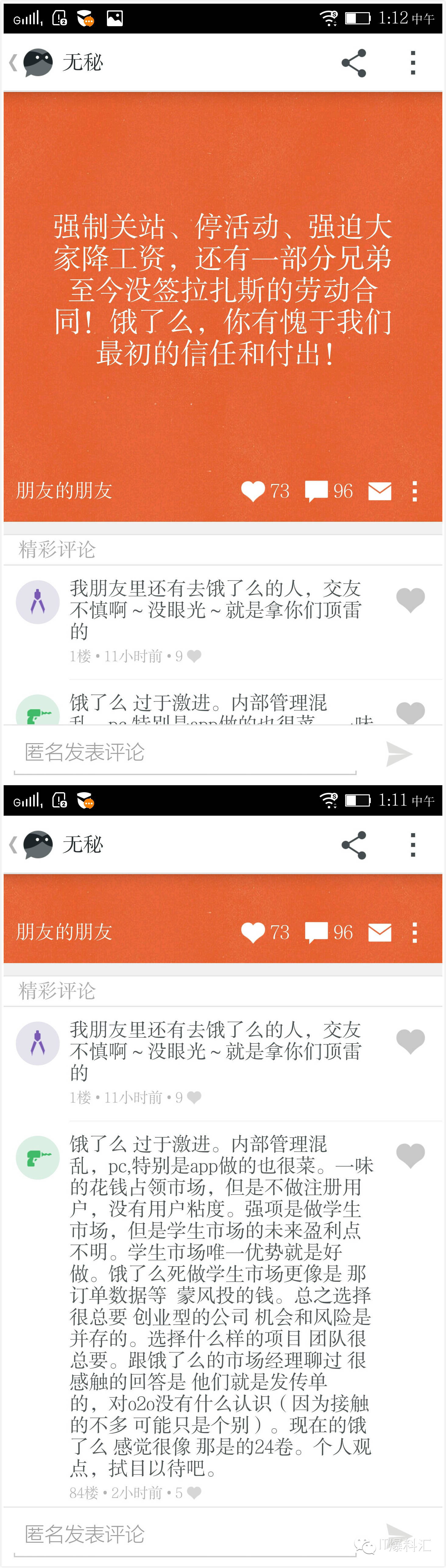 所以,这事最大的可能性就两种,要么饿了么的公关很渣,要么强制关站、裁员的传闻属实。